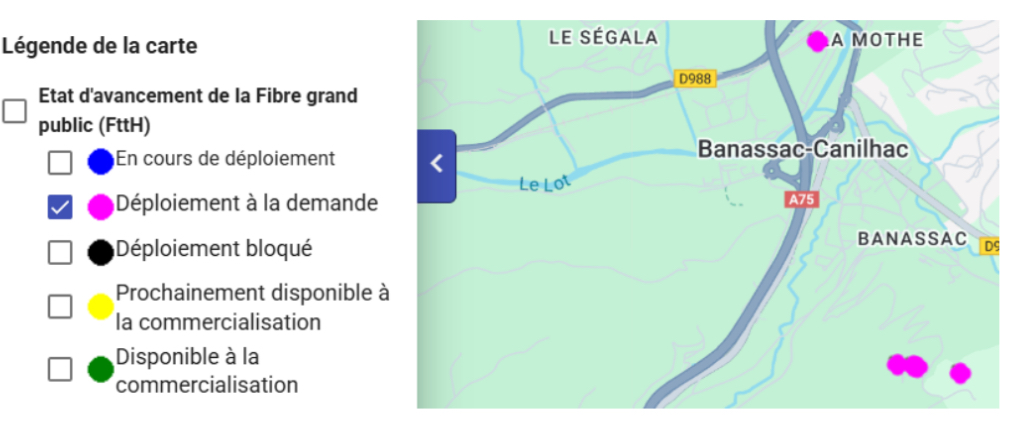 Les logements concernés sont matérialisés par une pastille rose sur la carte d’éligibilité https://alliancetreshautdebit.fr/eligibilite.